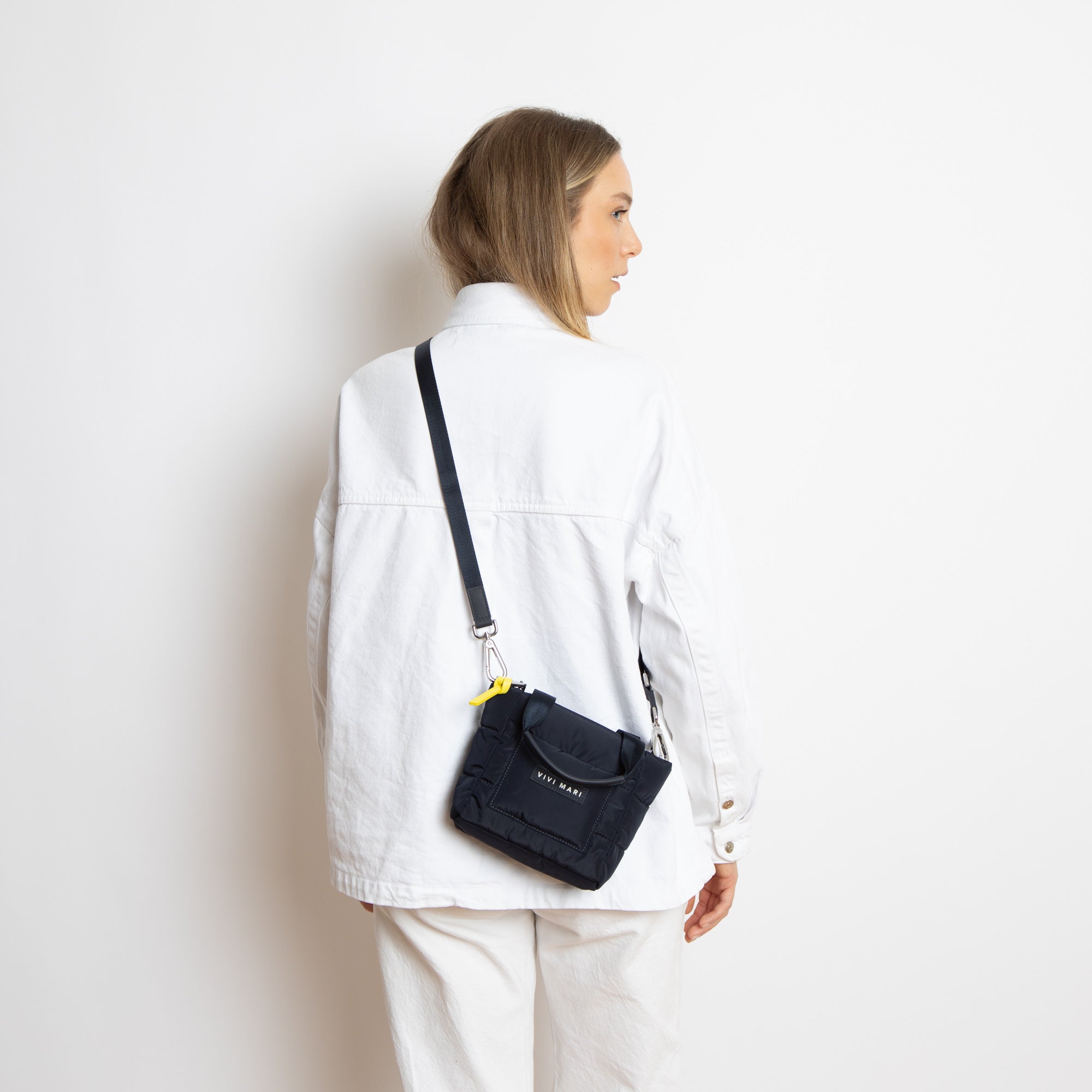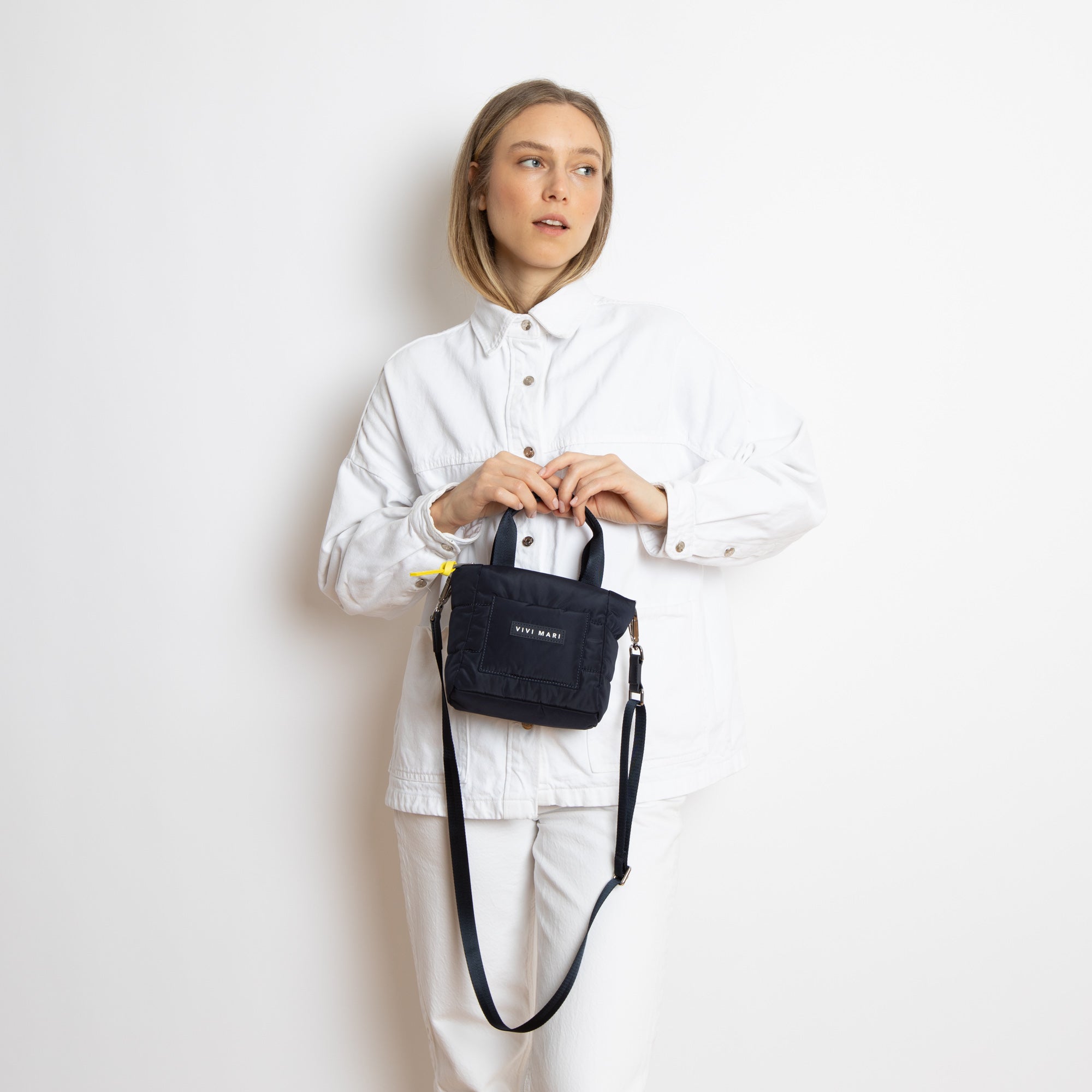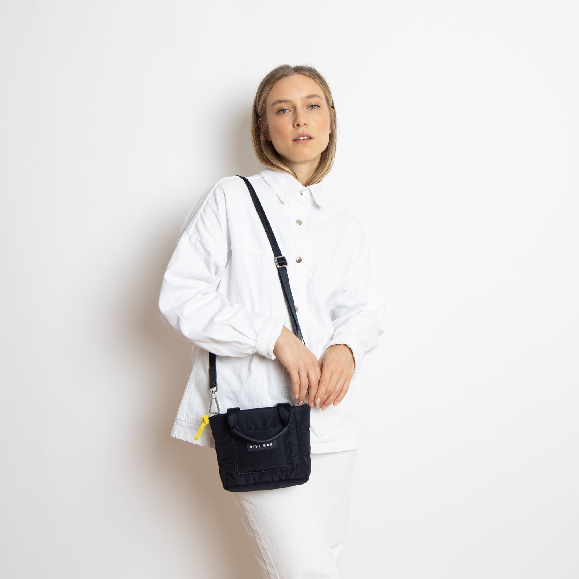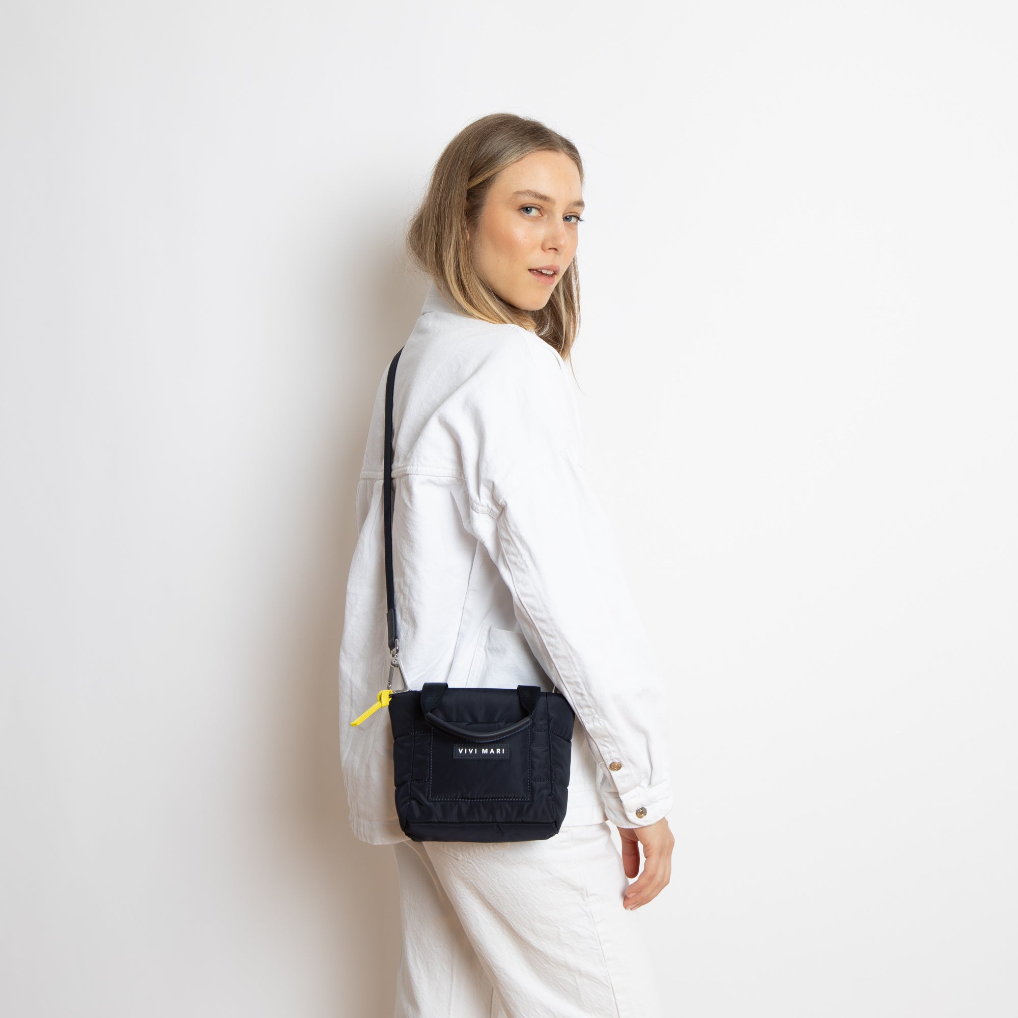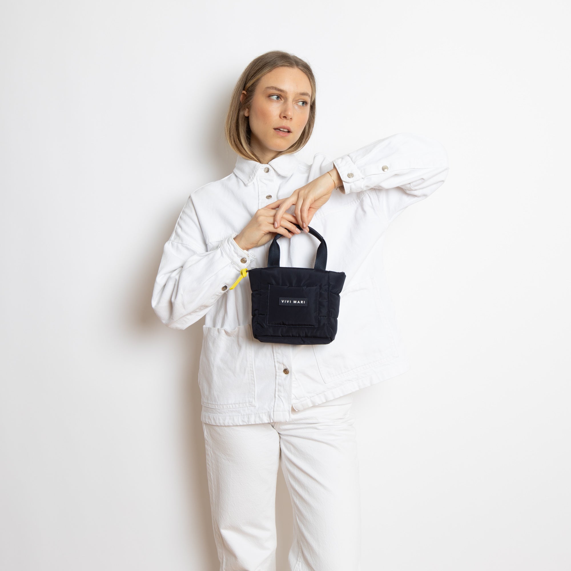 padded tote bag mini + strap basic woven slim - navy - VIVI MARI