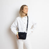 Die Tasche ist 100 % vegan und aus recycelten Materialien hergestellt. Die Größe bietet Platz für deine wichtigsten Gegenstände: Großes Smartphone, kleines Portemonnaie Taschentücher, Lippenstift, Sonnenbrille, Schlüssel.