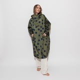 Avec notre Raincoat urbain à la coupe oversize, tu profites au maximum des jours de pluie. Le Raincoat est fabriqué à partir de matières premières recyclées et est imperméable. La cape au look VIVI MARI dots dans la couleur olive/navy te protège de l'humidité et peut être portée de manière flexible sur une veste d'hiver chaude les jours de froid.
