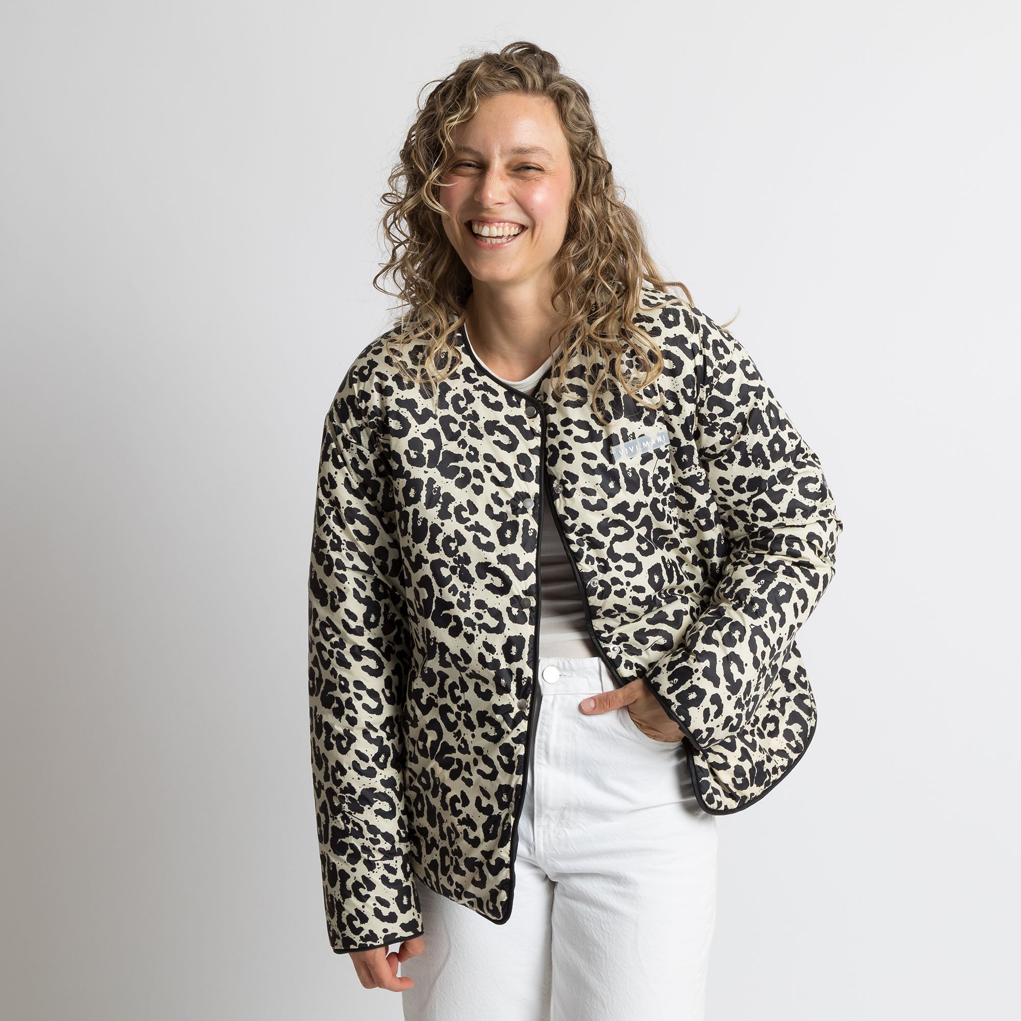 La Puffer Jacket è realizzata con un tessuto esterno in nylon di alta qualità (riciclato al 100%) e un'innovativa imbottitura in poliestere (riciclato al 100%), che trattiene l'aria e fornisce quindi ulteriore calore. Come tutti gli articoli della collezione VIVI MARI, la giacca è 100% vegana e priva di crudeltà sugli animali. La giacca ha un taglio ampio e termina all'altezza dei fianchi. È disponibile in due taglie, si adatta a diverse corporature ed è realizzata con materiali riciclati.