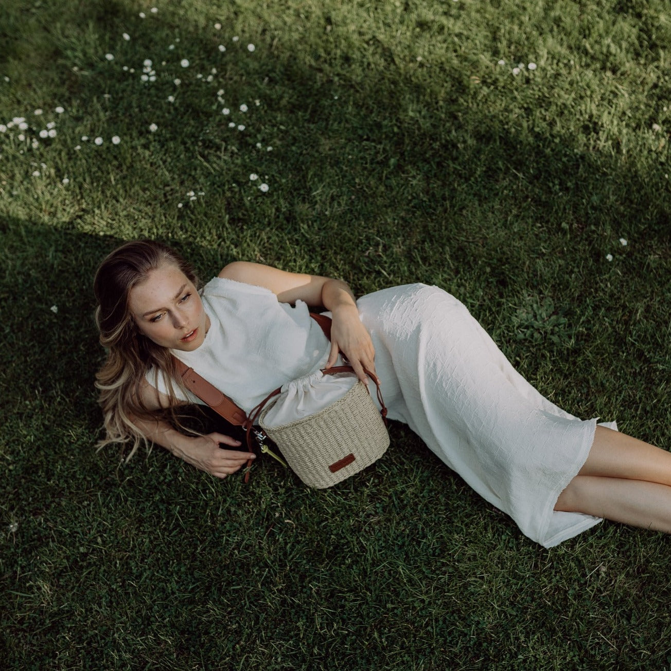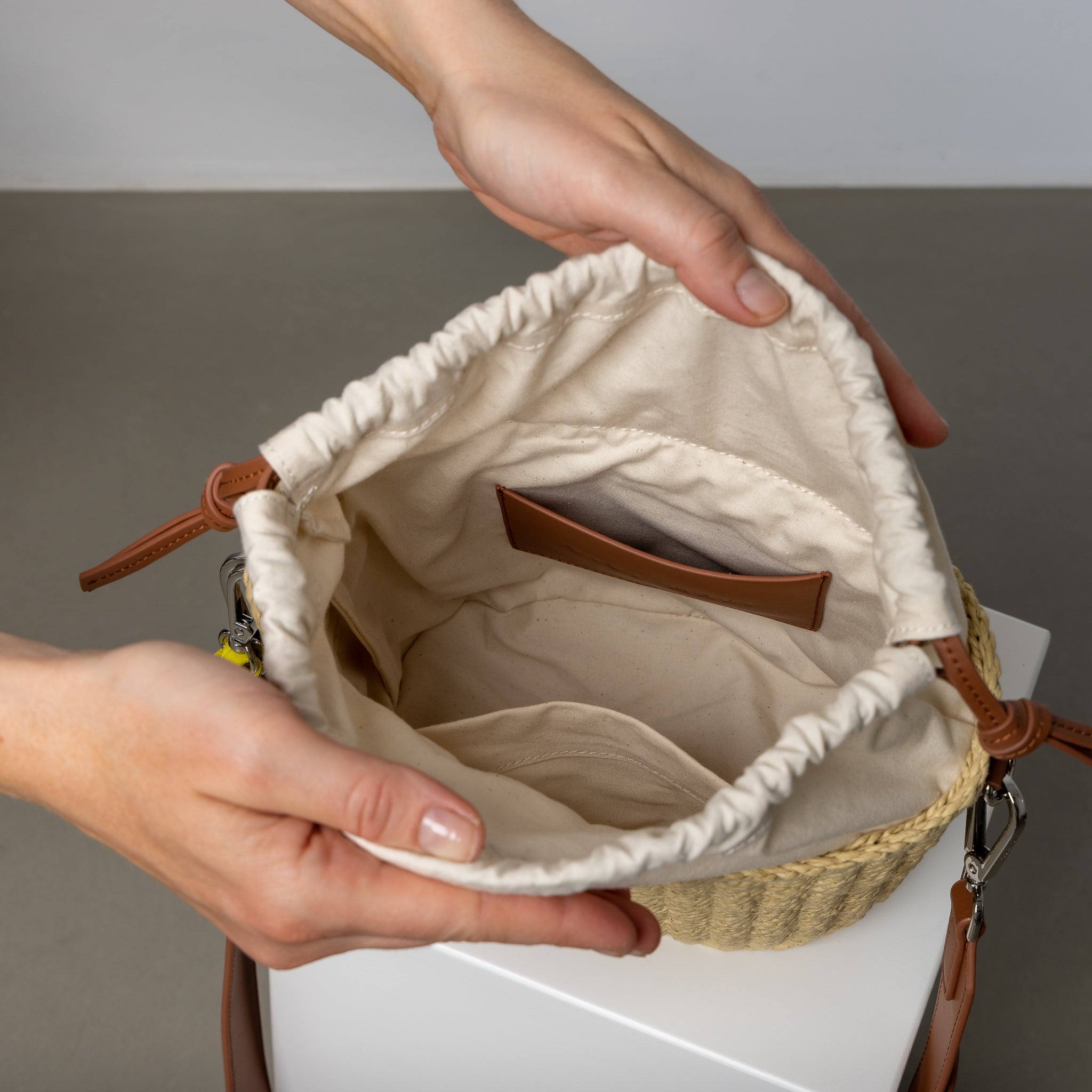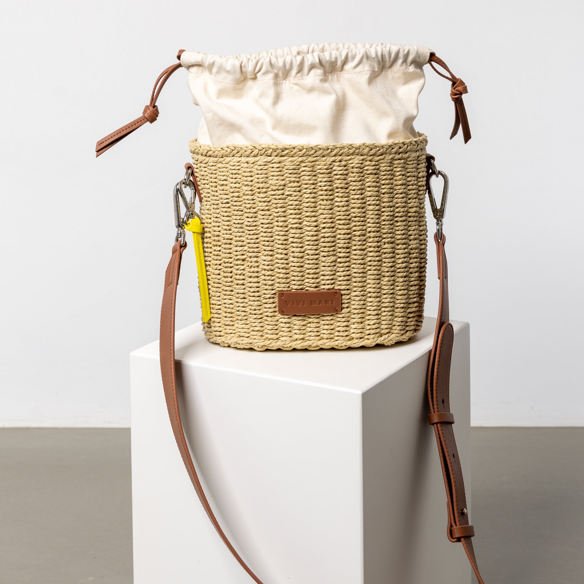 Het met de hand geweven taslichaam is licht, soepel en comfortabel om te dragen. Variaties in het weefwerk als gevolg van hoogwaardig handwerk geven de tas zijn karakter en maken je tas echt uniek. De afsluitbare voering heeft twee binnenzakken en is gemaakt van 100% ongeverfd organisch katoen. Zoals de hele VIVI MARI collectie is ook de Straw Bucket Bag vegan, inclusief alle toepassingen.