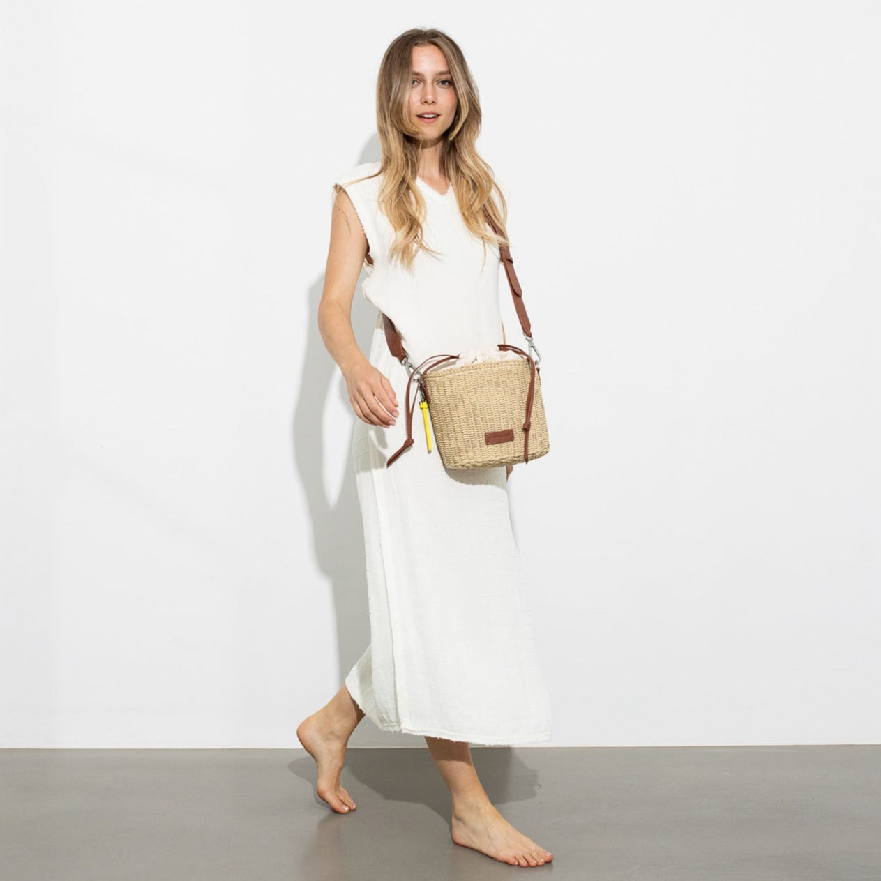 Onze Bucket Bag Straw is de must-have voor je urban styling, vooral voor de zonnige dagen van het jaar. Draag hem crossbody of op de schouder met de bijgeleverde strap basic of combineer onze verwisselbare schouderbanden voor een unieke look.