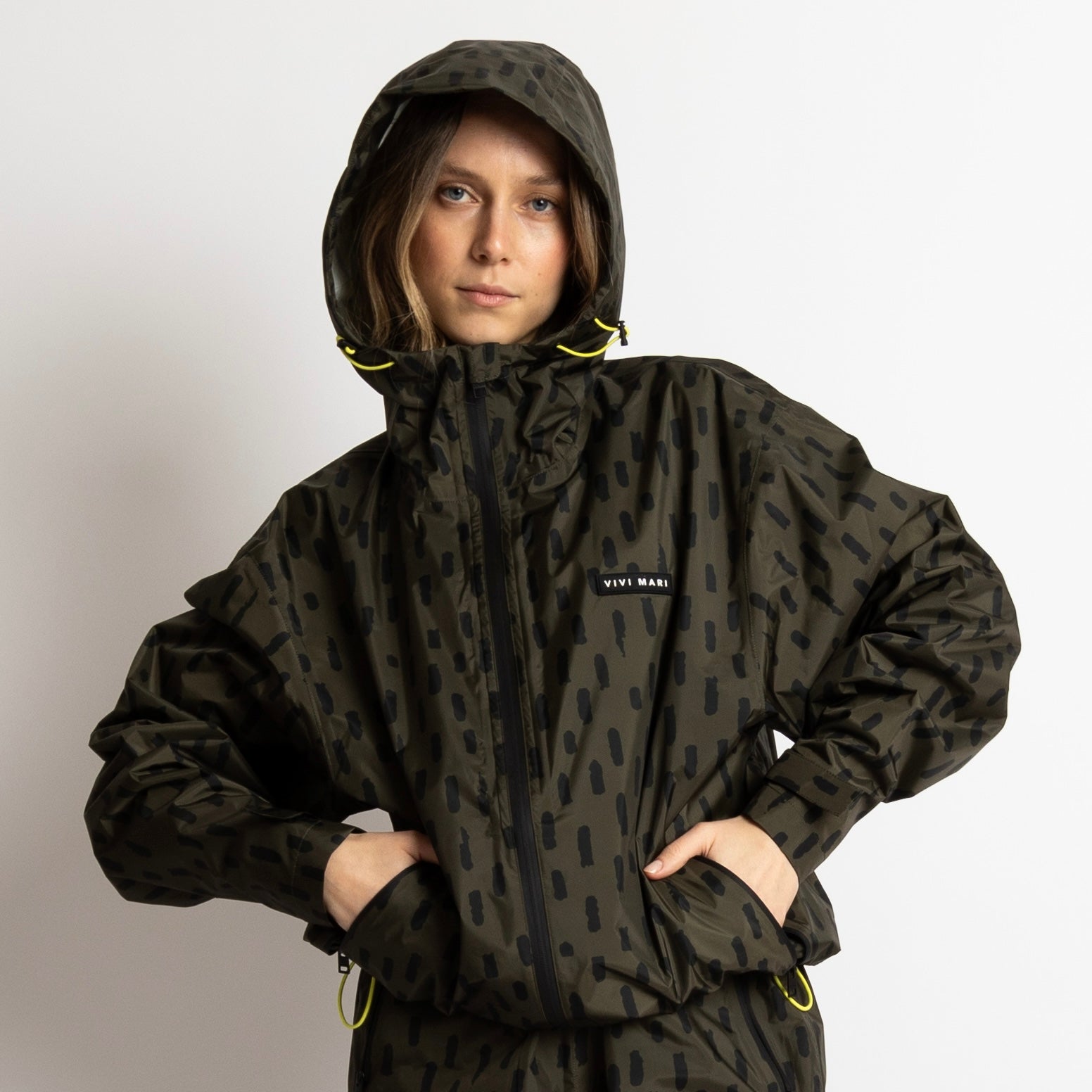 Maak jezelf weerbestendig: capuchon met elastisch trekkoord, verstelbare manchetten met klittenband aan de mouwen, afsluitbare zakken, verstelbare zoombreedte - het Regenjack is ook je perfecte metgezel op de fiets. Combineer het regenjack met de apart verkrijgbare VIVI MARI regenbroek.